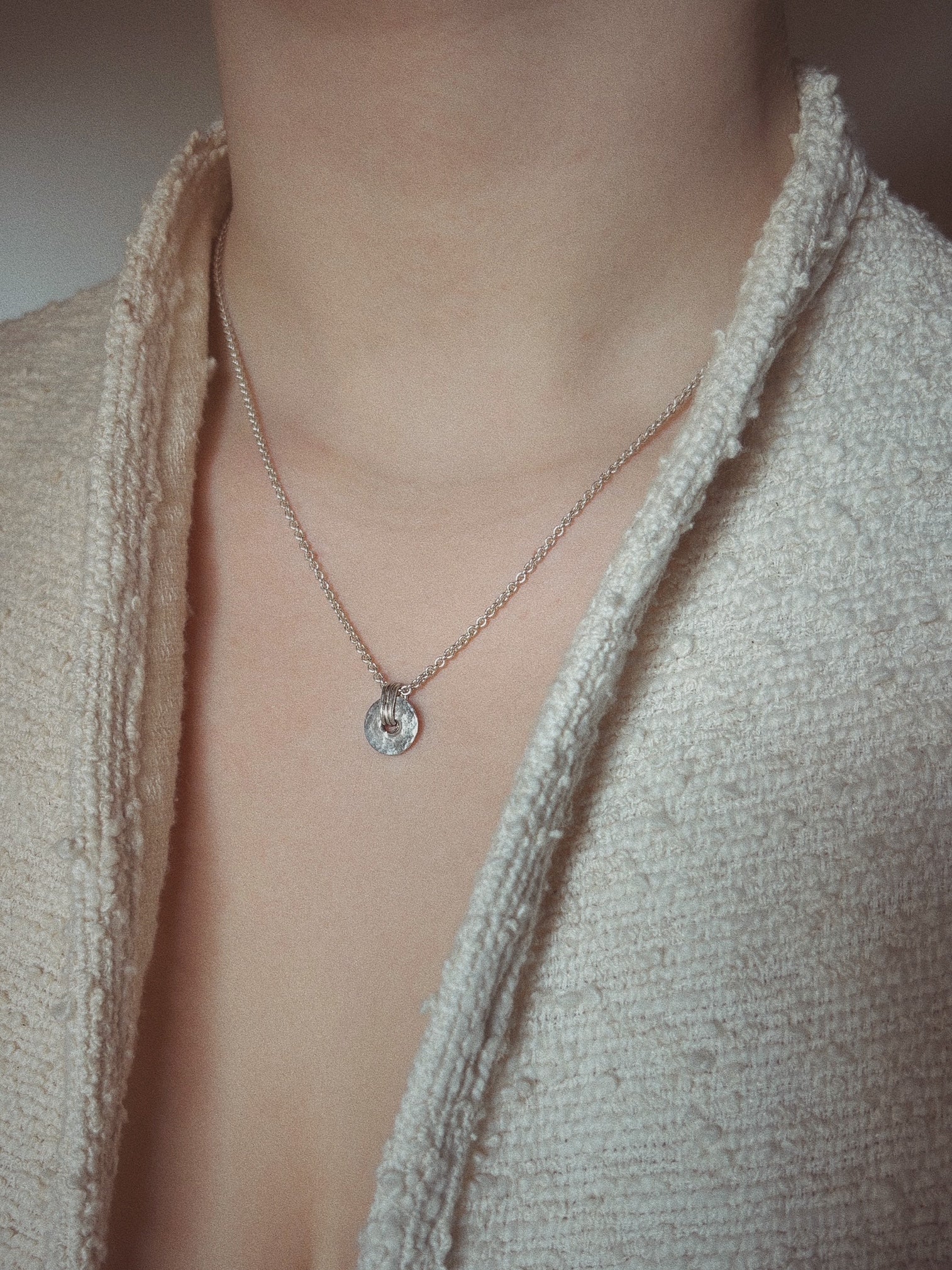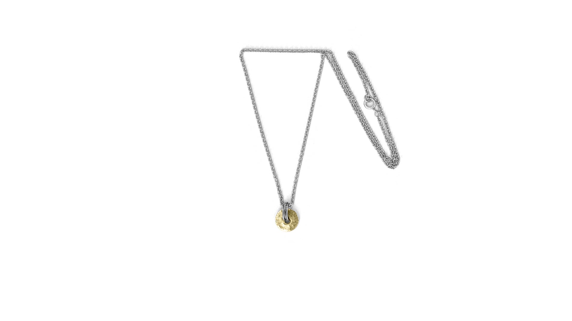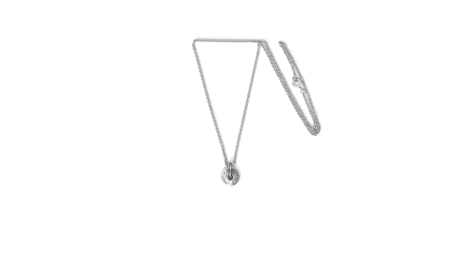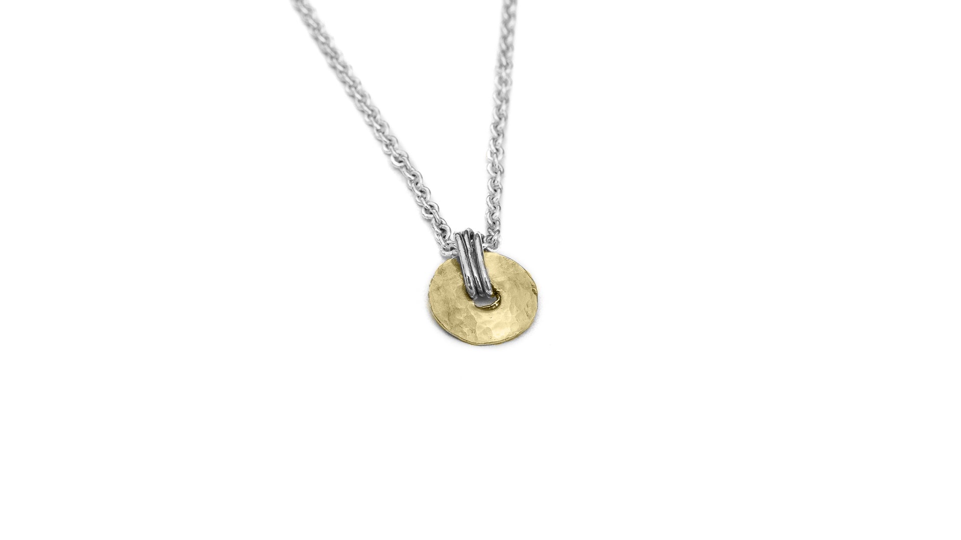 A beautiful timeless necklace with a hammered finished pendant. Available in sterling silver and 14c gold and in a mix of silver en 14c gold. Thickness chain 2mm / pendant diameter 10mm. Each pendant is authentic and can slightly differ from the picture.